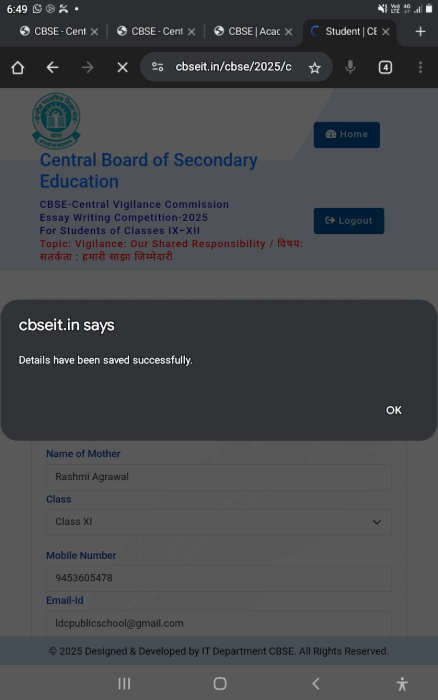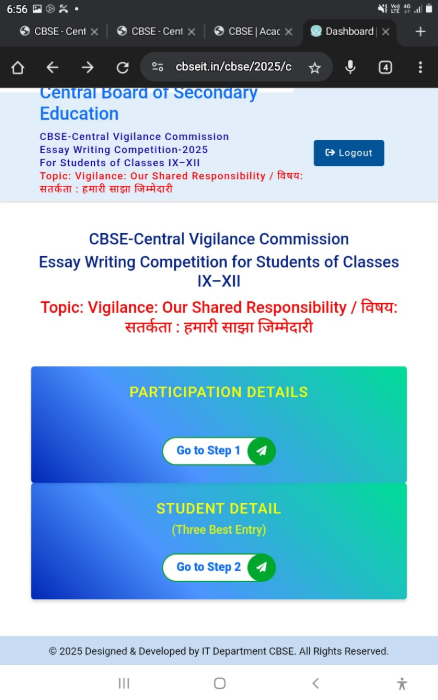 Essay Writing Competition on the Topic - Vigilance : Our shared responsibility successfully uploaded in CBSE website